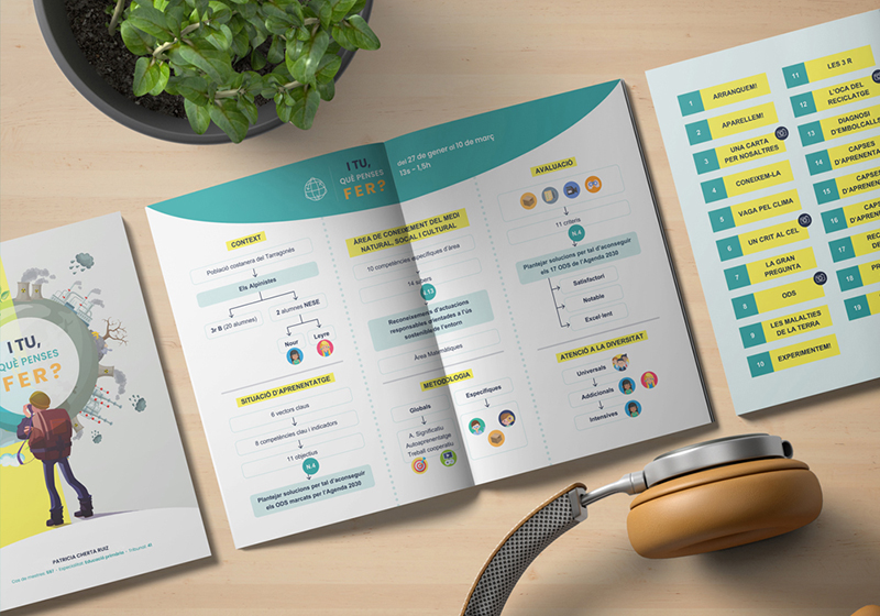 Aquest projecte va ser especial i un d’aquells reptes que afrontes amb molta il·lusió. La Patri, cosina del Carles, es presentava al concurs d’oposicions per convertir-se en mestra de primària i ens va demanar, si l’ajudàvem a donar forma gràfica a tota la documentació que havia de presentar al tribunal.